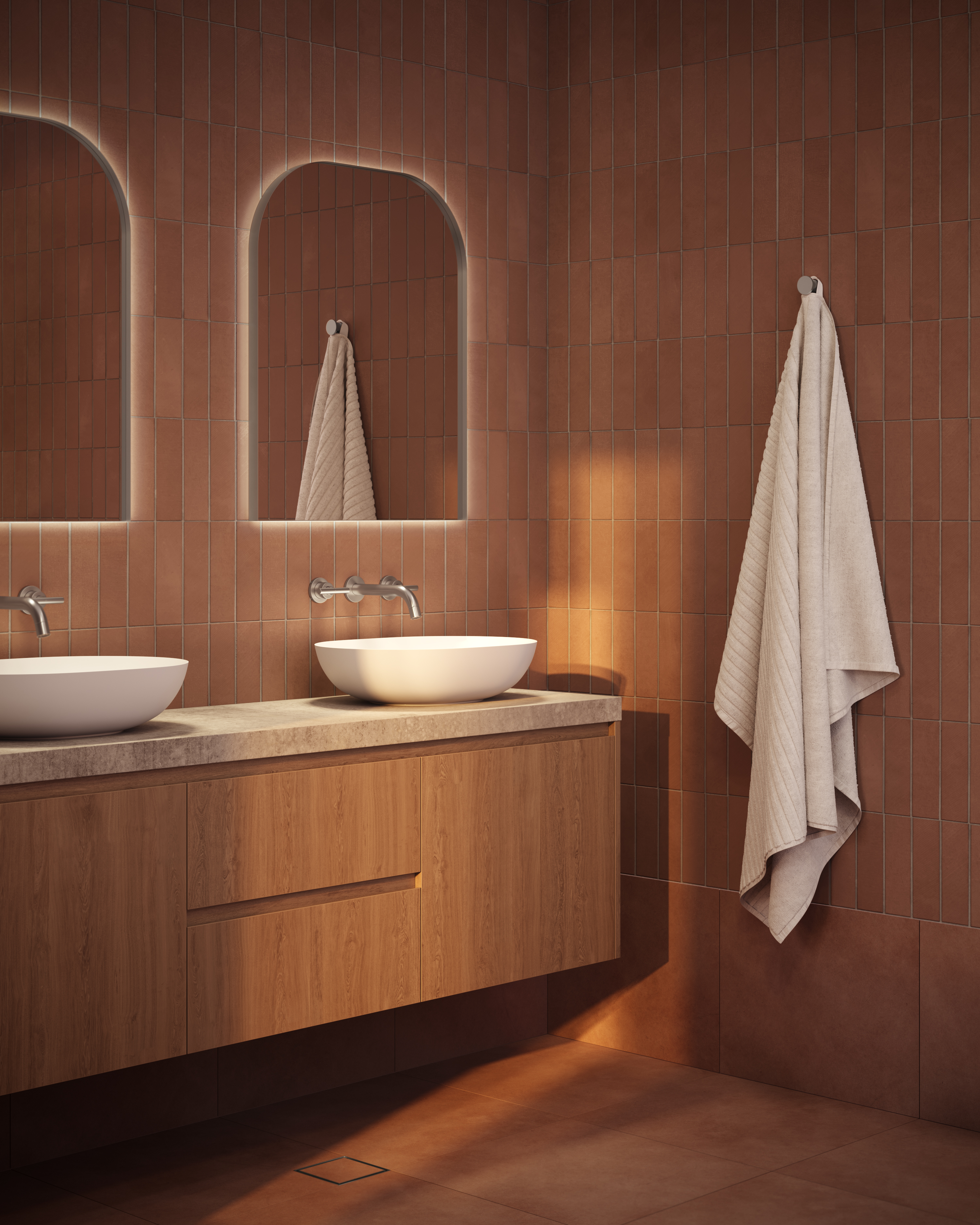 At ABI, we use the highest quality materials and colouring processes to ensure a durable and timeless finish that you will love for years to come. Like many other materials, the colour may appear differently from product to product due to lighting within the installation location and reflection on products with different surfaces (flat and curved).