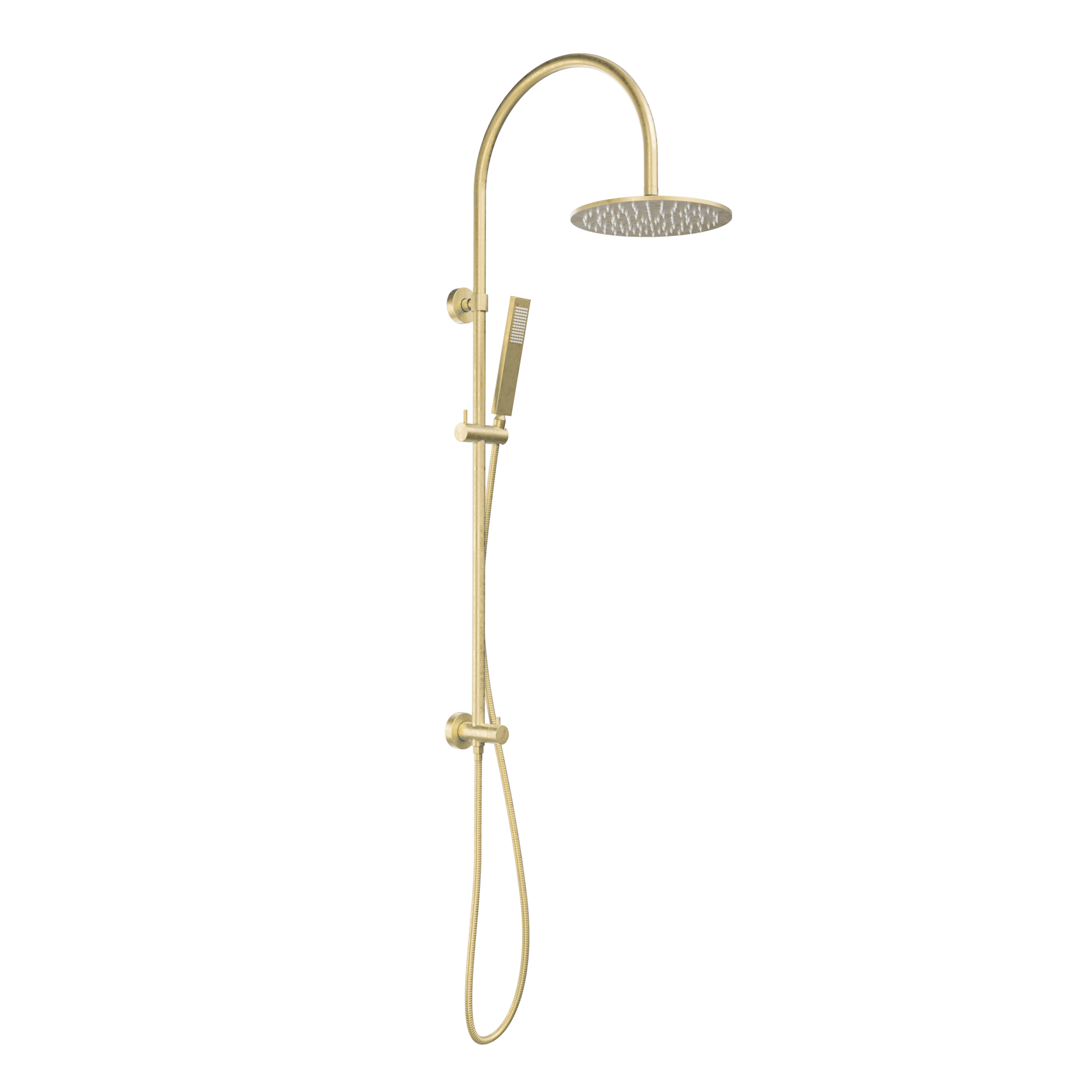 A wall-mounted shower set that combines both an overhead shower head and a hand shower with a diverter function. The Elysian Gooseneck Shower Set is a premium product that benefits from strong durability and high functionality.