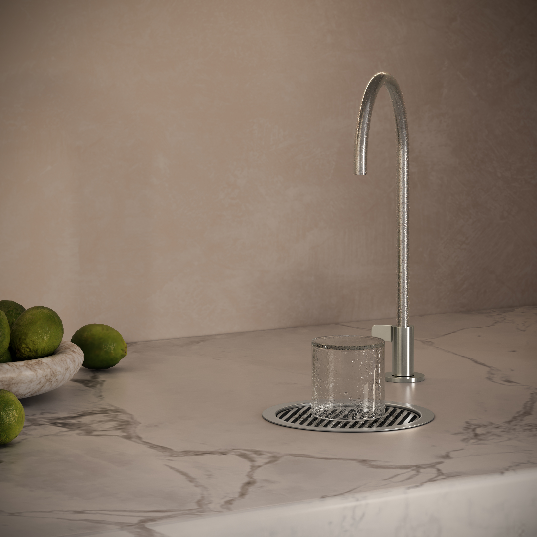 Our Glass Cleaner with Drain is available in five finishes for aesthetic consistency with your Mini Filter Tap and is suitable for top or undermount installation.