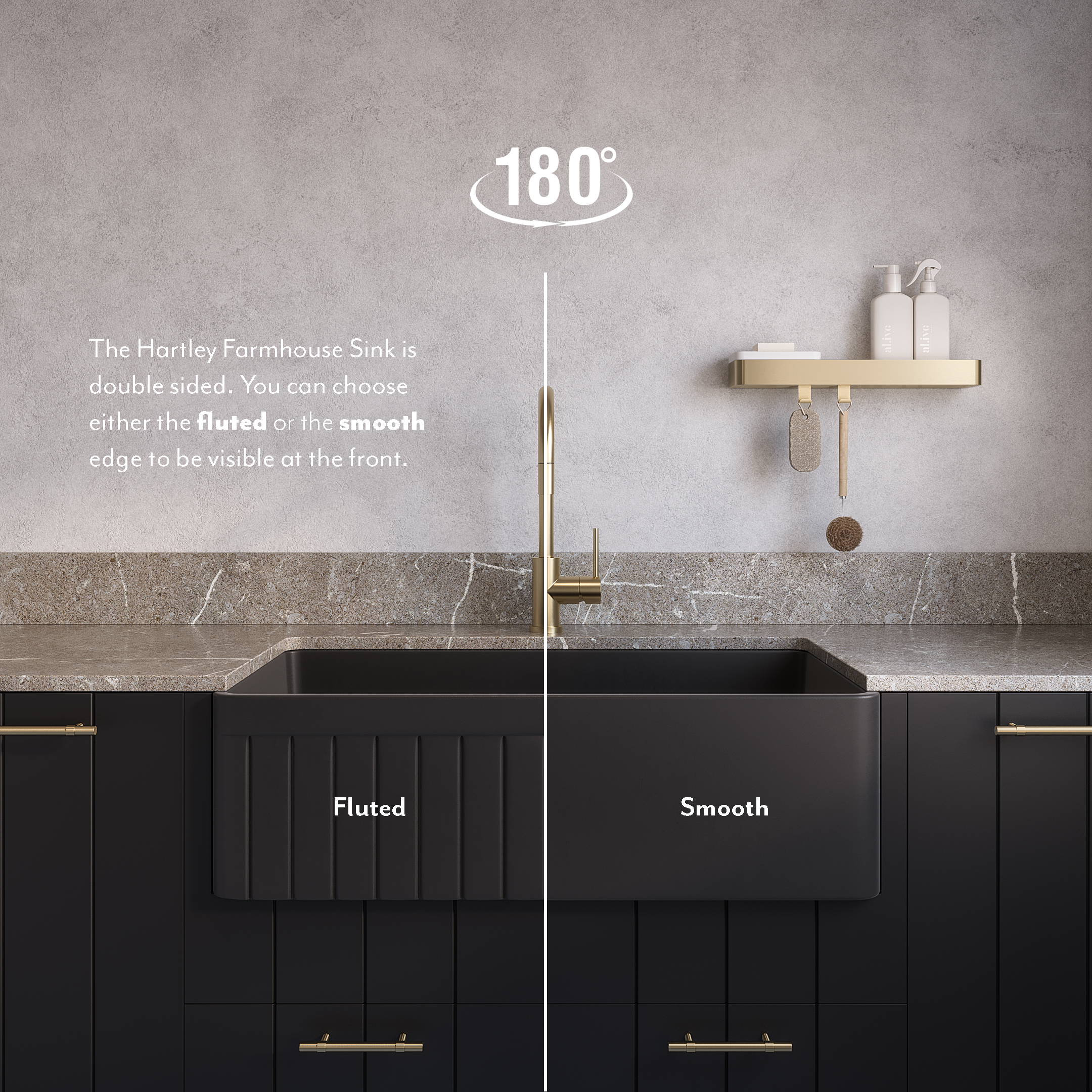 – Unique detailing on either side of the sink for versatile installation options.