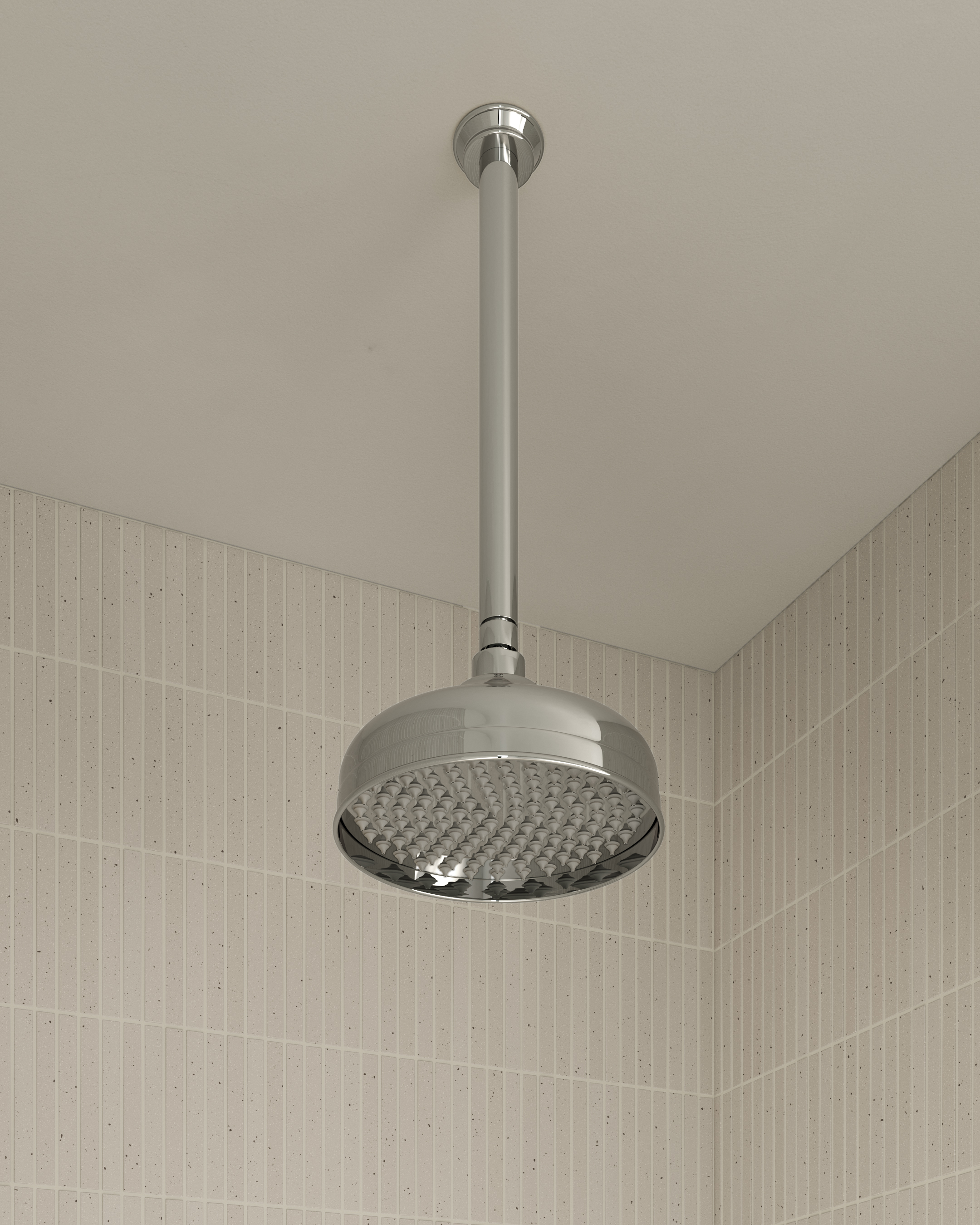 The ceiling-mounted Shower Dropper and Head Set from the Kingsley Collection inspire exceptional luxury.