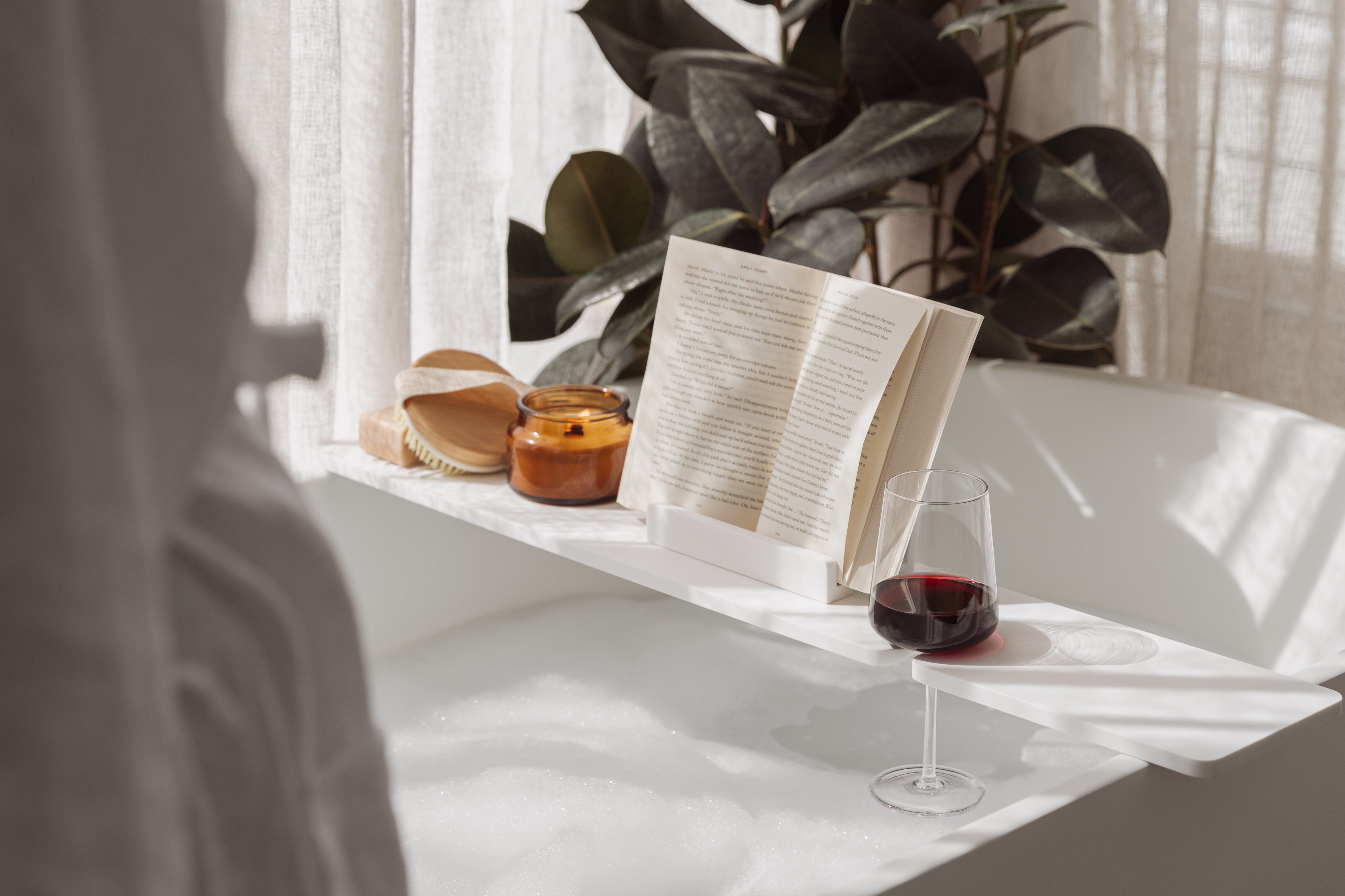 It’s time to unwind with our highly resourceful Bath Caddy. Sitting comfortably upon your ABI bath, this handy shelf is defined by its multi-functionality that incorporates a fully removable tablet support, soap bar holder, and wine glass holder.