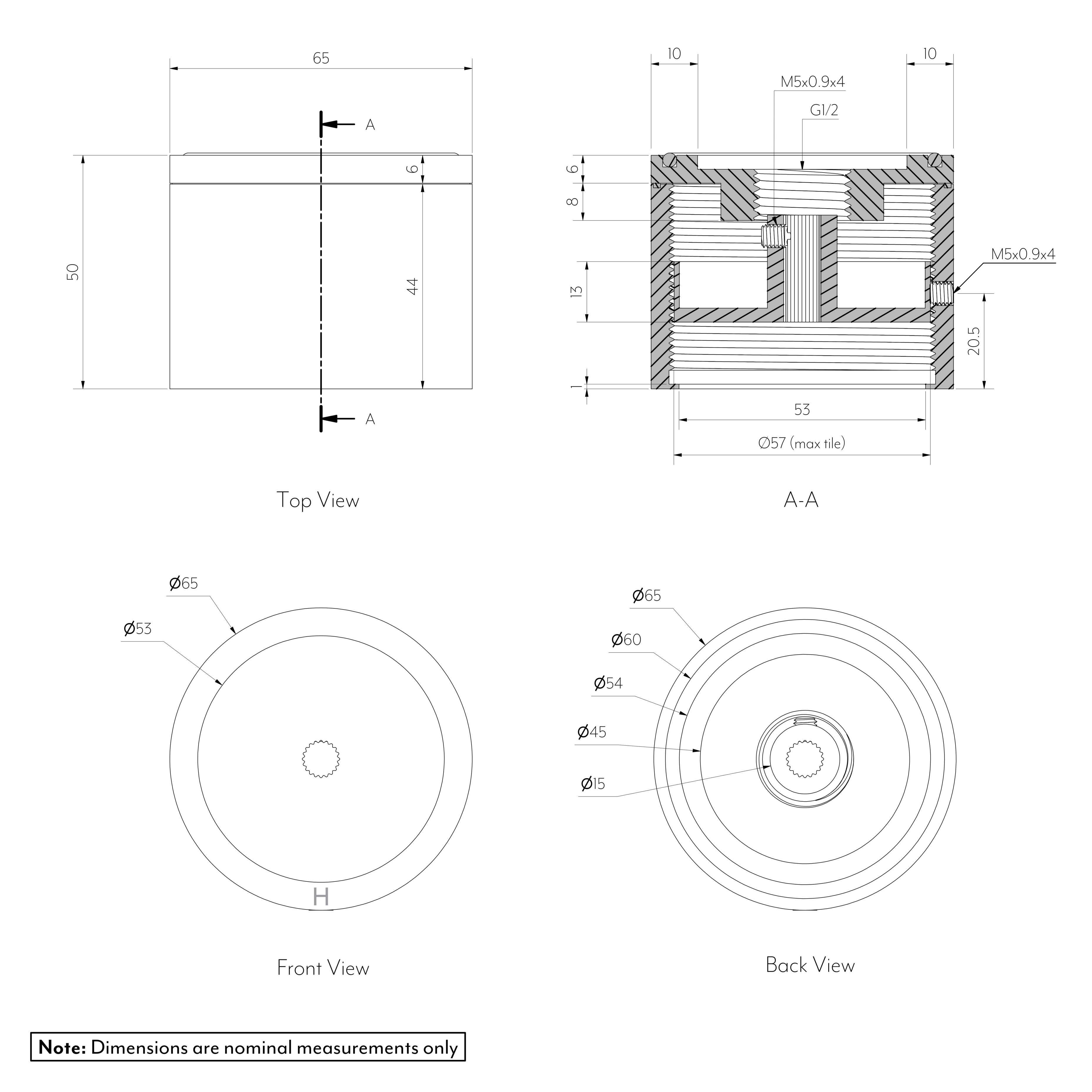 Dimensions (mm) | Diameter: 65mm Projection: 50mm |