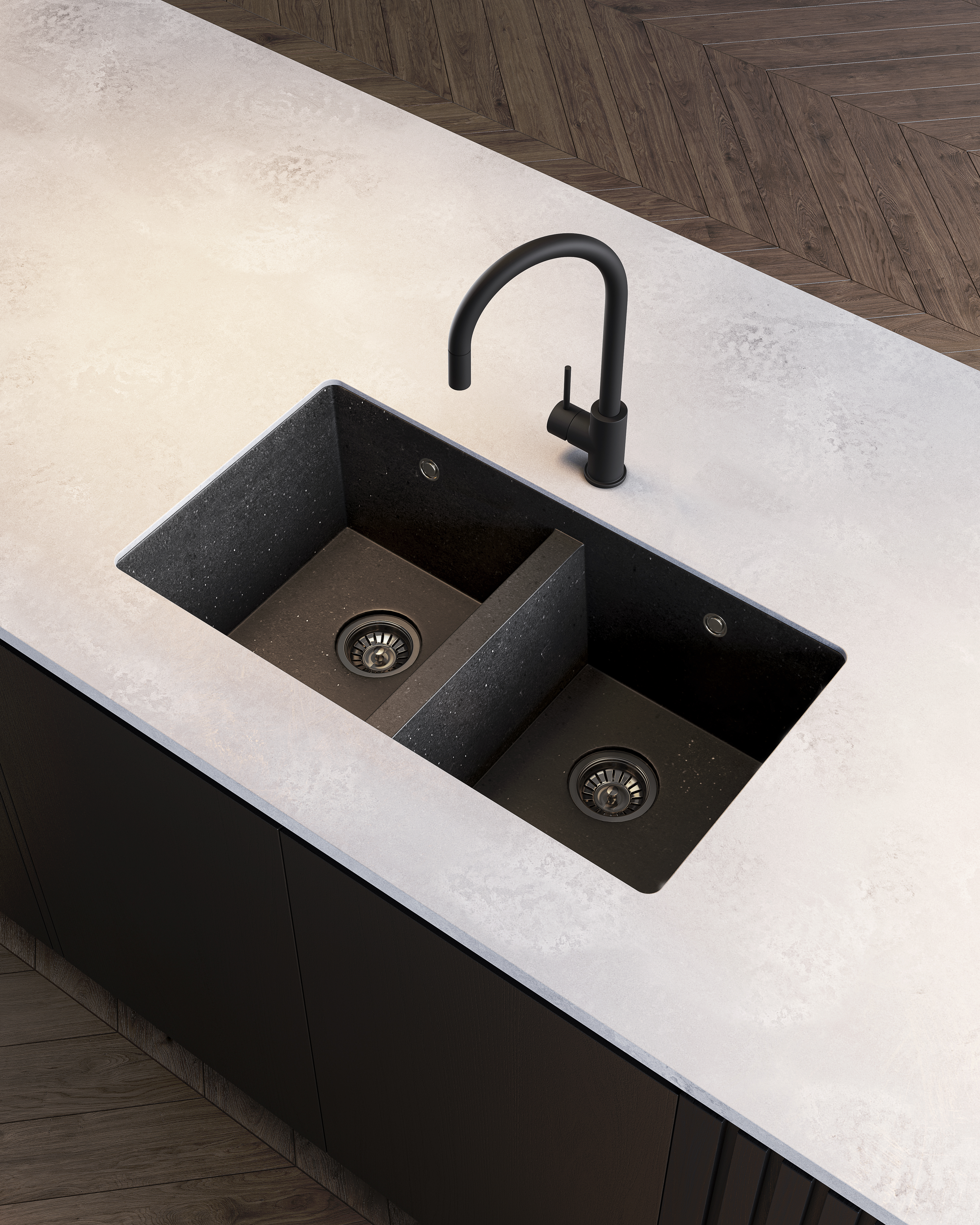 The VERA sink is the jewel of your kitchen, effortlessly maintaining a sleek and stylish look with its unique, black granite surface. Offering ensured durability and outstanding functionality, the VERA’s resistance to impact and damage will keep it looking exceptional for years to come. Giving you more options when it comes to cleaning – our VERA double sink offers dual-capabilities, letting you wash your dishes on one side and dry on the other. Designed to suit your space – install the sink above or under your benchtop.