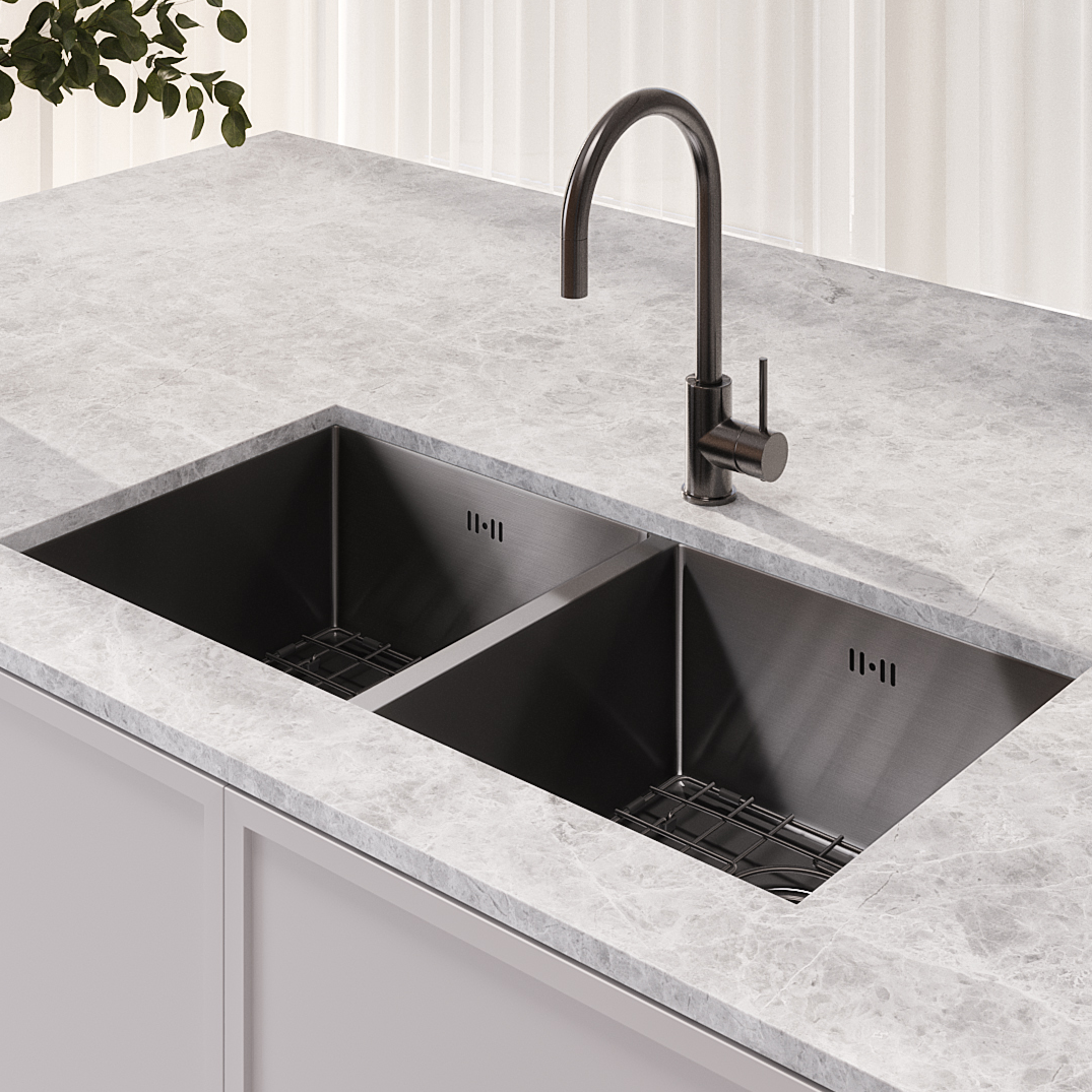 The Zalo Double Kitchen Sink is the perfect sink to enhance your space. It has been carefully designed with a 10mm radius and folded drainage points to limit build-up and to ensure easy cleaning.